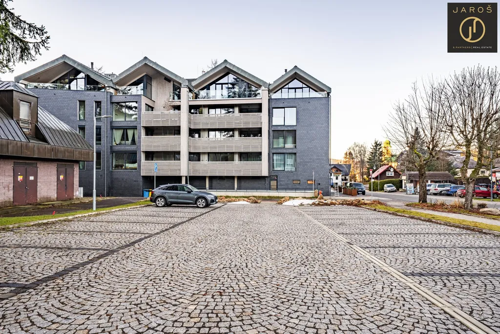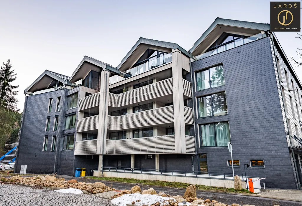 Apartmán se nachází ve 2. nadzemním podlaží moderní novostavby projektu Corso Harrachov, přímo v centru města Harrachov, jen pár kroků od lanovky a ski areálu, s možností obout lyže přímo u apartmánu, dojet na sjezdovku i zpět a zároveň s přímým nástupem na běžkařské tratě.