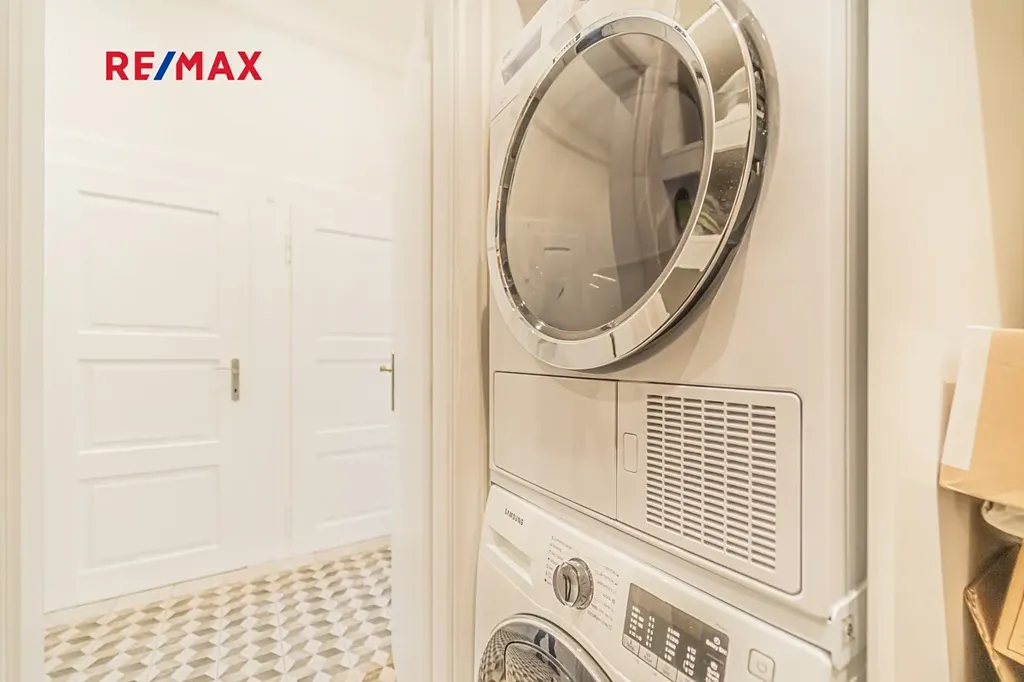 Bytová jednotka v osobním vlastnictví prošla v r. 2018 kompletní, ale velmi citlivou rekonstrukcí s důrazem na zachování ducha nemovitosti a zároveň na propojení původních prvků s moderním bydlením. Renovace dřevěných parketových podlah, interiérových dveří s obložkovými zárubněmi z masivního dřeva, nová avšak dobová dřevěná špaletová okna včetně kování s izolačním trojsklem - vše doplněno moderní kuchyňskou linkou s vestavnými spotřebiči, luxusní koupelnou či klimatizací. Obývací pokoj s kuchyní je orientován na východ s výhledem na Vltavu a Vyšehrad. Okna ložnic pak na západ, do vnitrobloku. Na první pohled Vás zaujme mnoho na míru zhotovených úložných prostor v podobně vestavných skříní, polic a šatníku, včetně průchozí šatny v ložnici. Velkou výhodou je uzavíratelná komora s regálovým systémem, kde je umístěna pračka a sušička. Technická místnost s plynovým kotlem, jenž představuje vlastní zdroj topení a ohřevu TUV je zcela oddělena.