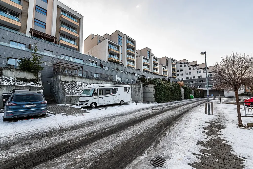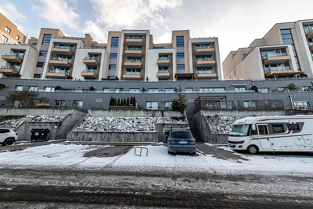 Bytový dům se nachází v uzavřeném areálu, kde se nachází například kavárna a barber shop, což umožňuje pohodlí přímo na dosah ruky.