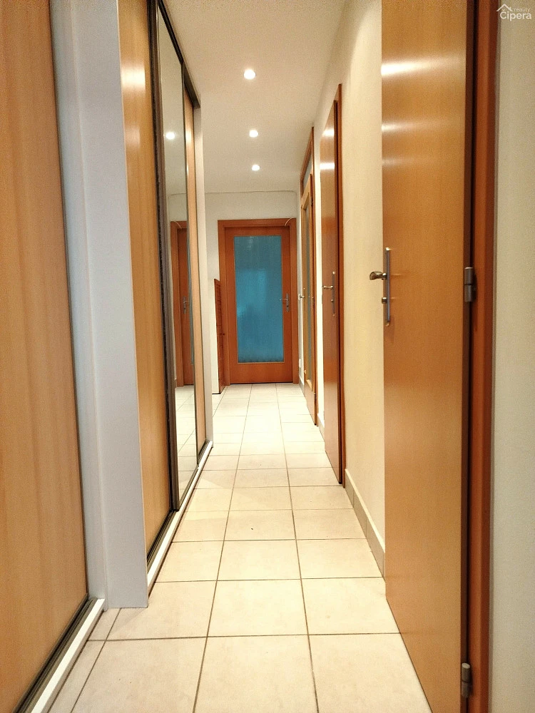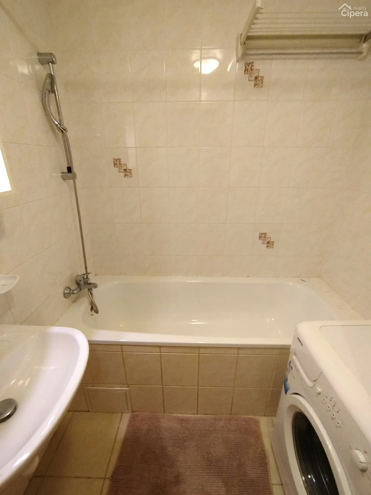 V koupelně se nachází vana s umyvadlem a pračka. Toaleta je samostatná. Na chodbě jsou k dispozici prostorné vestavěné skříně.