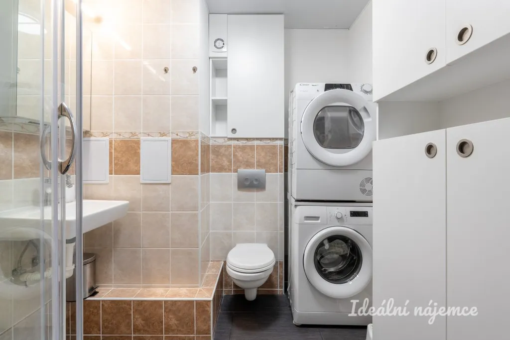 Interiér je nabízen jako částečně vybavený, což vám dává ideální možnost doladit si domov podle vlastního vkusu. Kuchyně disponuje linkou s lednicí, elektrickou a mikrovlnnou troubou, varnou deskou, digestoří a nechybí ani jídelní kout. V obývacím pokoji najdete pohodlnou sedací soupravu, konferenční stolek a televizi. Samostatná ložnice je vybavena manželskou postelí a úložným prostorem. Velkou výhodou koupelny se sprchovým koutem a toaletou je přítomnost pračky i sušičky, což výrazně zvyšuje komfort bydlení.