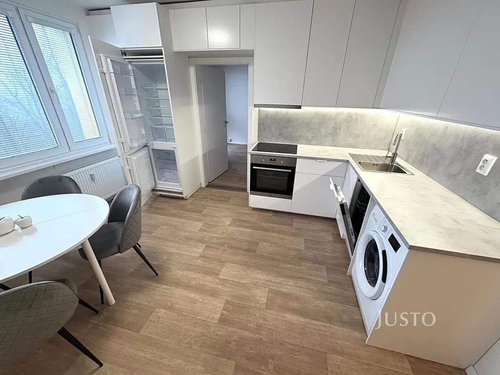 Byt prošel kompletní a nákladnou rekonstrukcí – disponuje zděným bytovým jádrem, moderní koupelnou s prostorným walk-in sprchovým koutem a WC, novými podlahami a kuchyňskou linkou včetně vestavných spotřebičů (elektrický sporák, digestoř, elektrická trouba, vestavná myčka nádobí, pračka, lednice+ mraznička), vysokorychlostní internet, TV.