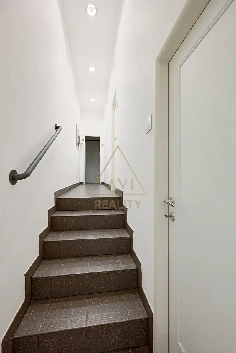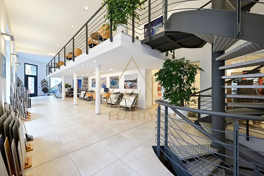 Součástí je samostatná místnost vhodná pro kuchyň, navazující sklad se vstupem z chodby a kompletní sociální zázemí (WC, výlevka, kuchyňka). Prostor zaujme elegantním designem, kamennou dlažbou a točitým schodištěm propojujícím tři úrovně.