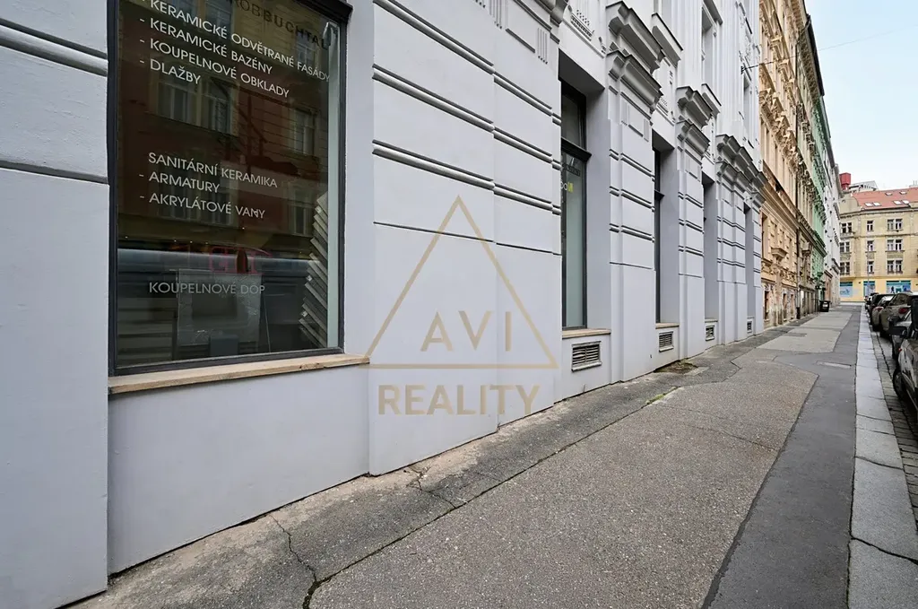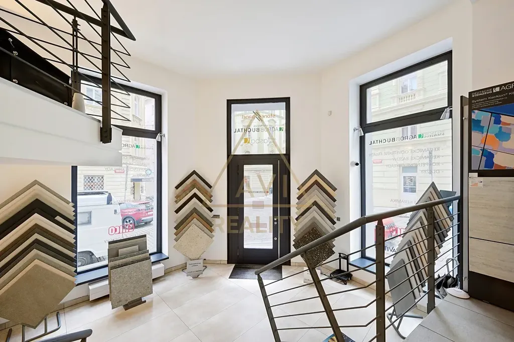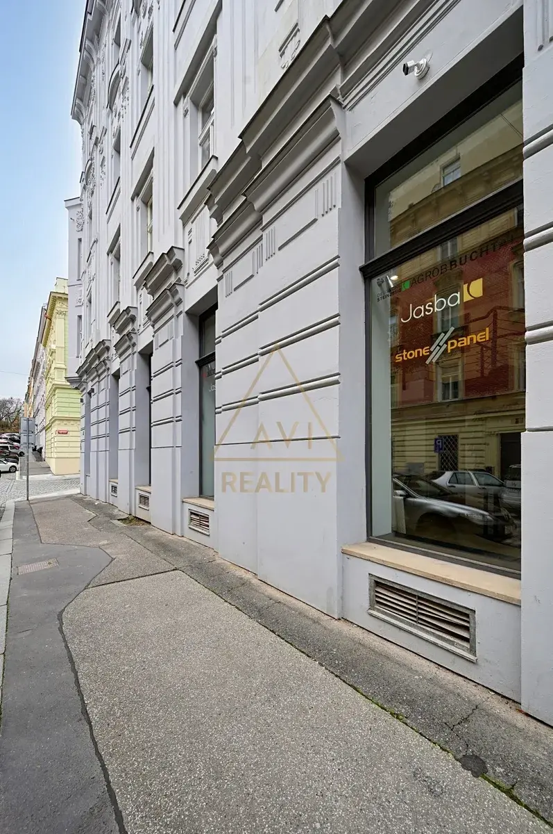 Nebytový prostor v přízemí s přímým vstupem z ulice a prosklenými výlohami je ideální pro gastro provoz, showroom či studio.