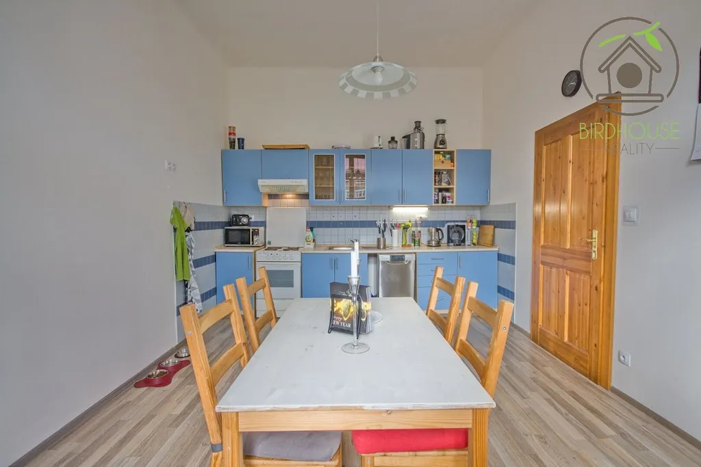 - Kuchyně (19,5 m²), která je vybavena prostornou kuchyňskou linkou, díky které Vás čeká spousta úložného prostoru, elektrický sporák s troubou, digestoř a naleznete zde i automatickou myčku nádobí.