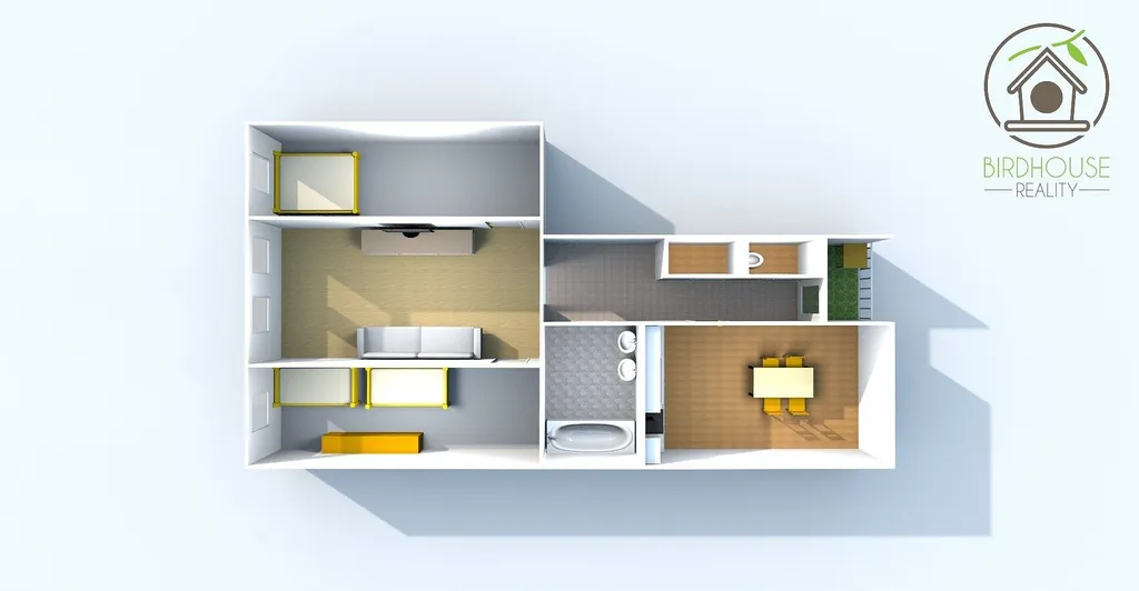 - Pokoj 3 (15,7 m²), který je zároveň nejmenší místností v bytě se nachází stejně jako pokoj číslo 2 vedle obývacího pokoje a nabízí i stejné možnosti využití.