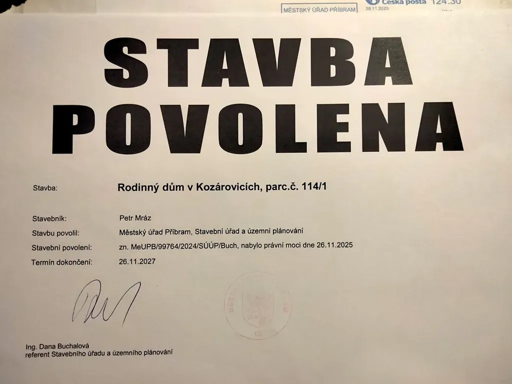 Součástí je projekt na RD s užitnou plochou 180 m2, stavební povolení vydáno, možnost okamžité realizace stavby.