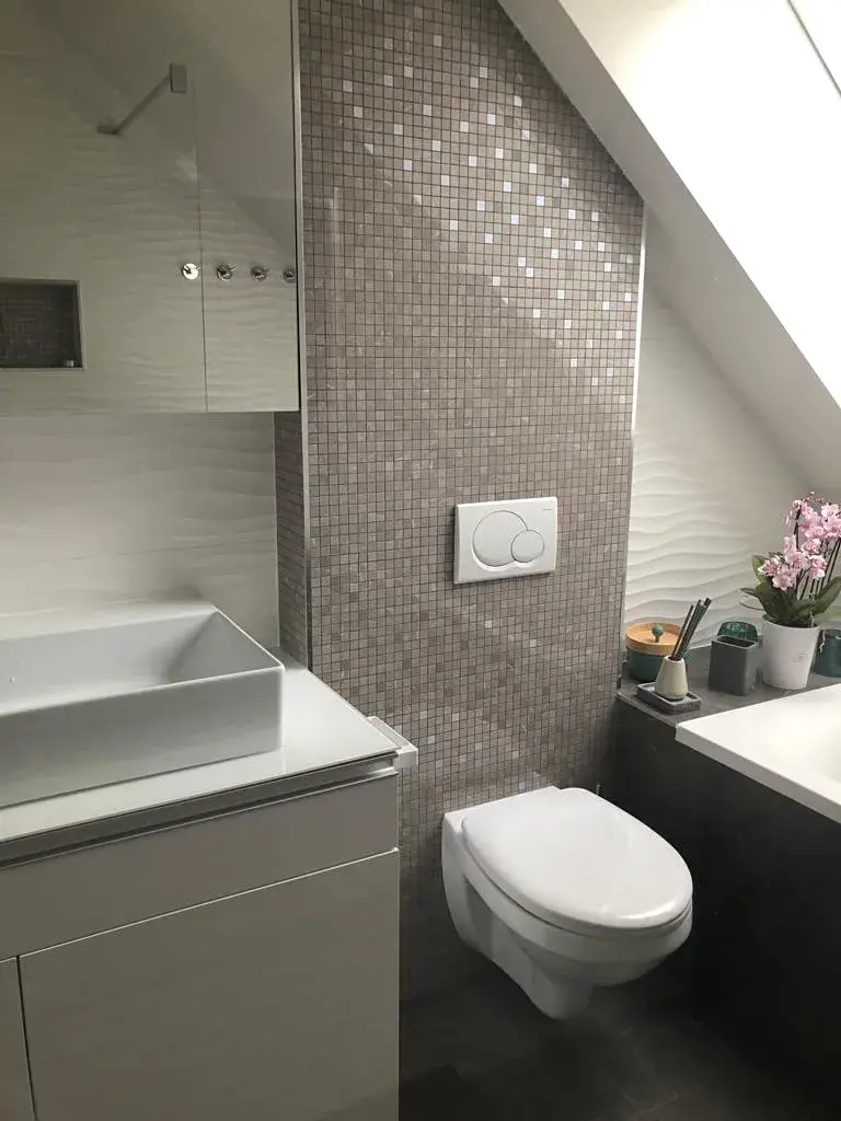 Vytápění domu je plynové, v kuchyni, jídelně a v koupelně je podlahové vytápění, v koupelně je topení elektrické. Vytápění je kontrolováno chytrým termostatem, který kontroluje přívod teplé vody do každého radiátoru, což umožňuje roční snížení nákladů na vytápění.