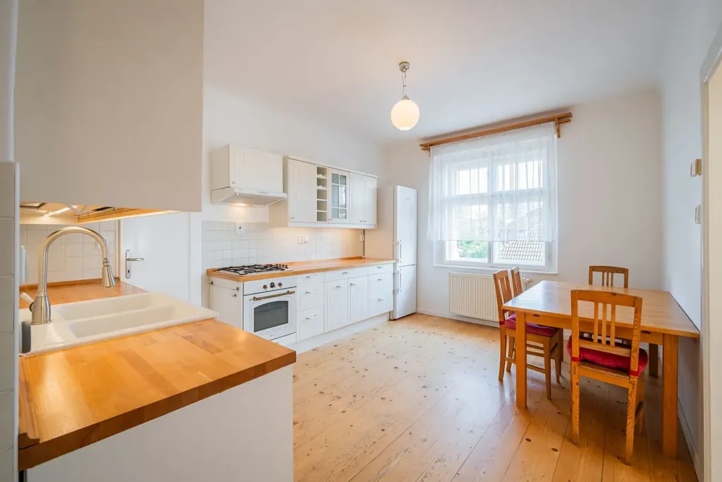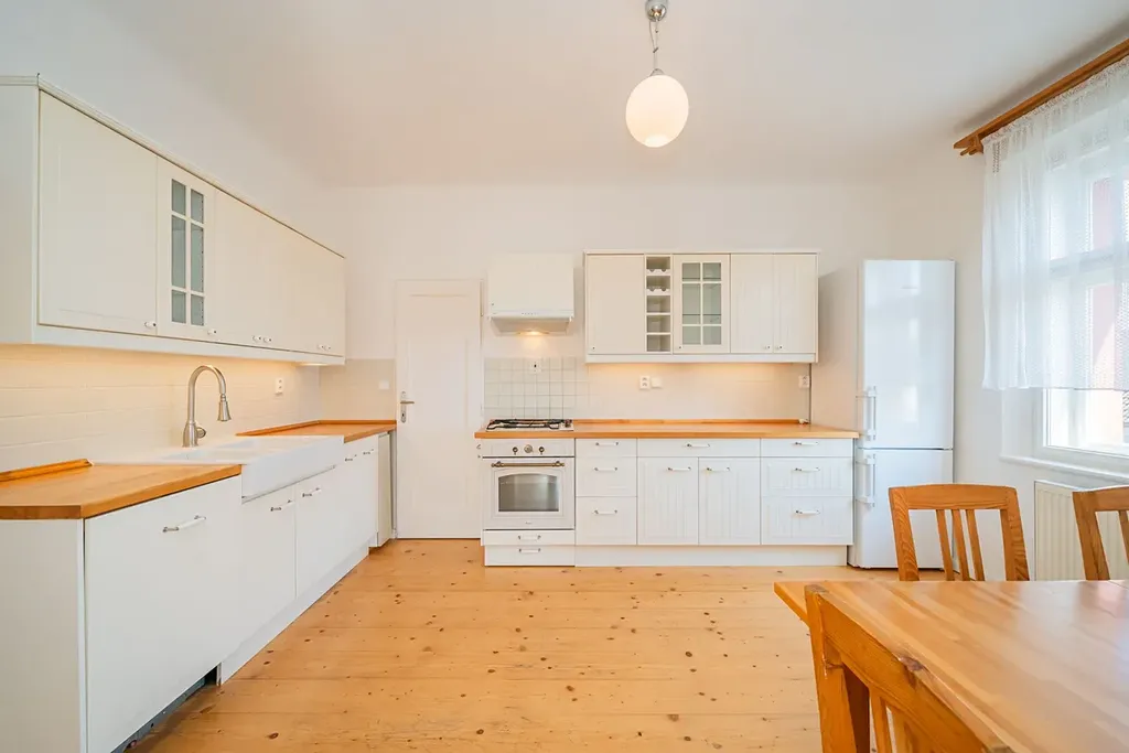 Nabízíme od 1. 3. 2026 (případně dříve – na dotaz) k pronájmu prostorný byt 5+1 ve stylové prvorepublikové vile ze 30. let ve vilové čtvrti Prahy 4 – Modřany, ulice Nečova. Ideální pro rodiny vracející se do Prahy ze zahraničí nebo pro expaty hledající autentické bydlení s charakterem. Nabídka je obzvlášť vhodná pro rodiny s dětmi díky blízkosti Prague British International School – Libuš campus.