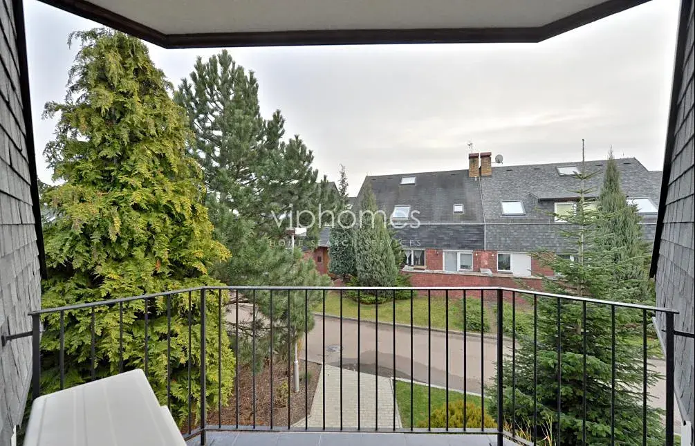 Dům nabízí v přízemí obývací pokoj s plně vybaveným kuchyňským koutem a vstupem na terasu a vzrostlou zahradu, pokoj pro hosty ze sociálním zázemím, prádelnu se sušičkou a pračkou, komoru. V patře je umístěna hlavní ložnice s vlastní koupelnou a další 3 ložnice, ke kterým náleží koupelna se sprchou a WC. Suterén domu - kotelna, sklad- velká místnost. Dubové a plovoucí podlahy, schodiště s obkladem z mramoru, krb, bezpečnostní vstupní dveře. V přízemí domu jsou nové elektrické rolety, francouzská okna, alarm, internet, satelitní TV připojení. Celý dům je klimatizován. Zahrada s opravdovým soukromím. Dům není zařízený nábytkem, ale je zde množství vestavěných skříní a 2 šatny. Garáž pro 2 vozy, dálkově ovladatelná vrata + jedno stání na pozemku pod uzavřením.