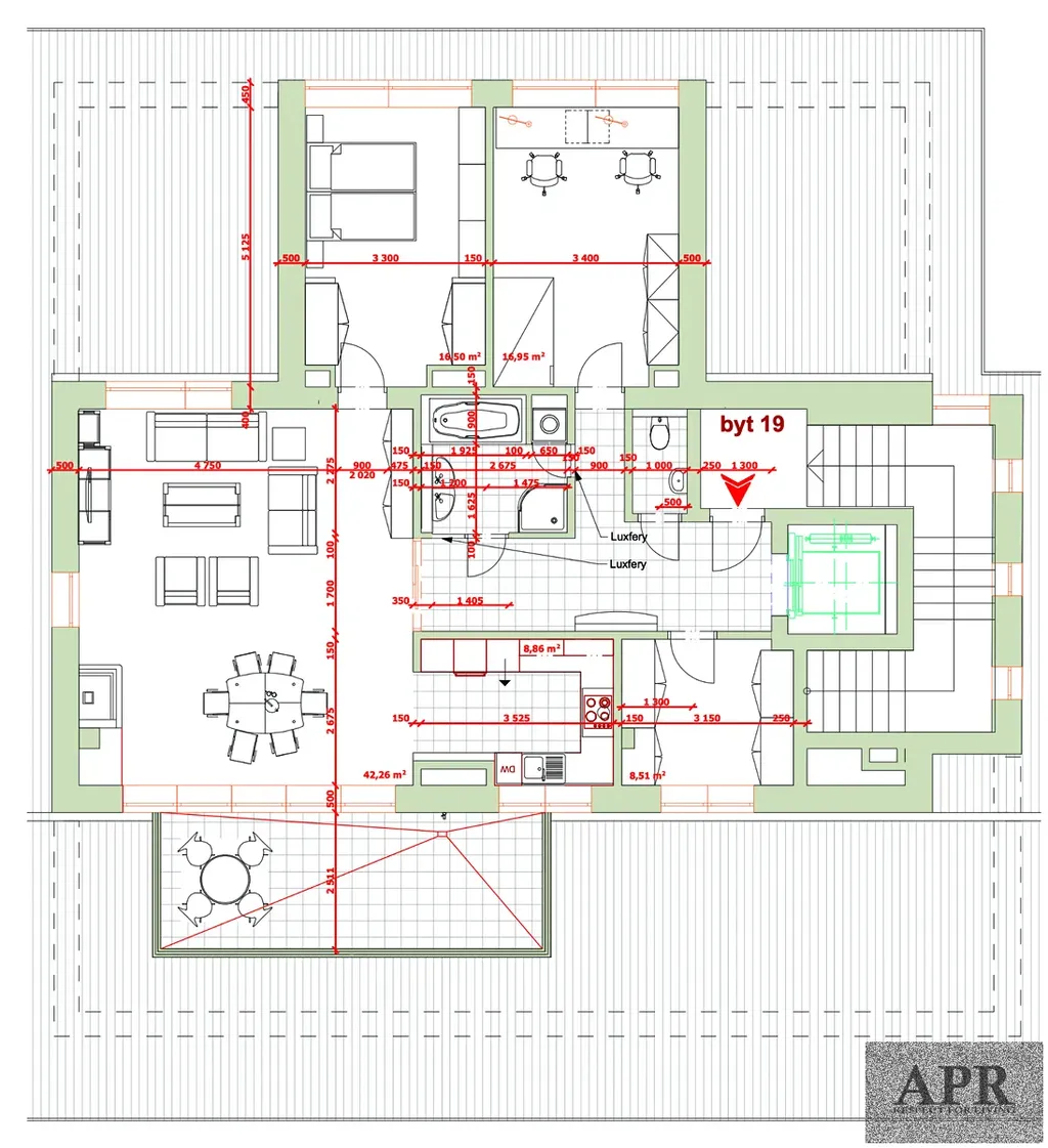 V zastoupení majitele Vám nabízíme prostorný, střešní Penthouse s terasou, nádhernými výhledy na centrum lázeňského města a privátním parkováním. Penthouse je luxusní, prostorný byt v nejvyšším patře bytového domu, který se vyznačuje nadstandardním vybavením, velkými terasami a často panoramatickým výhledem. To vše na jedné z nejlepších adres v Luhačovicích "Vila Marie" . Typově se jedná o Penthouse o užitné ploše 100 m2 s terasou 20 m2. Vlastní velké parkovací místo ( zaparkují zde dva automobily ). Výtah ze suterénu ( z parkoviště ) až do bytu.