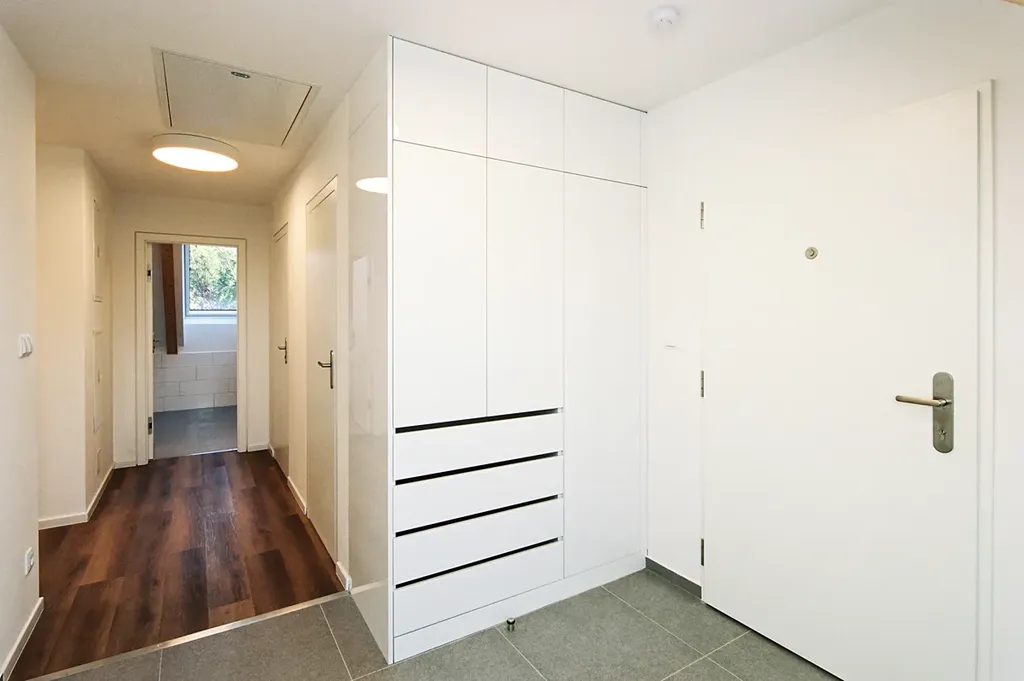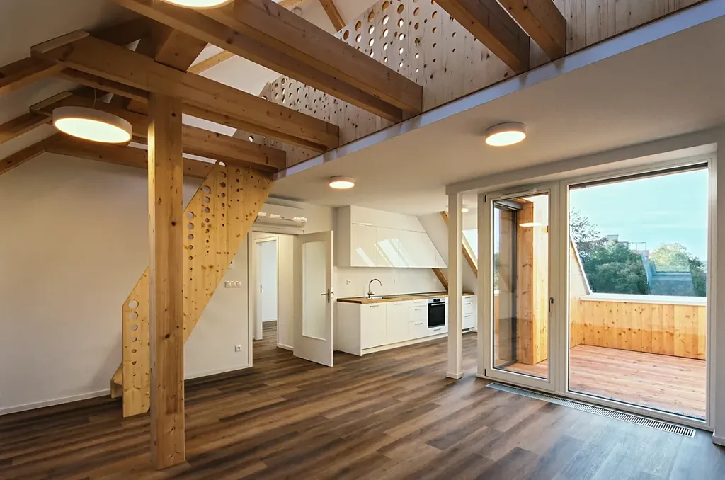Nabízíme k pronájmu krásný byt 3 + kk s obytnou galerií a terasou v novém bytovém domu v Dolních Břežanech. Dům o devíti bytových jednotkách, navržený ateliérem Jakuba Ciglera, se nachází v centrální části obce. Byt je vybaven kuchyňskou linkou s indukční varnou deskou, myčkou, troubou a digestoří, má vlastní plynový kotel, vstupní předsíně jsou vybaveny vestavěnými úložnými prostory. V pokojích jsou položeny vinylové podlahy, v koupelně a předsíni dlažba. Okna jsou vybavena stínícími roletami, terasy zastiňují baldachýny. K bytu náleží komora, přístupná z chodby. Je možné pronajmout si venkovní parkovací stání. Byt je klimatizován.