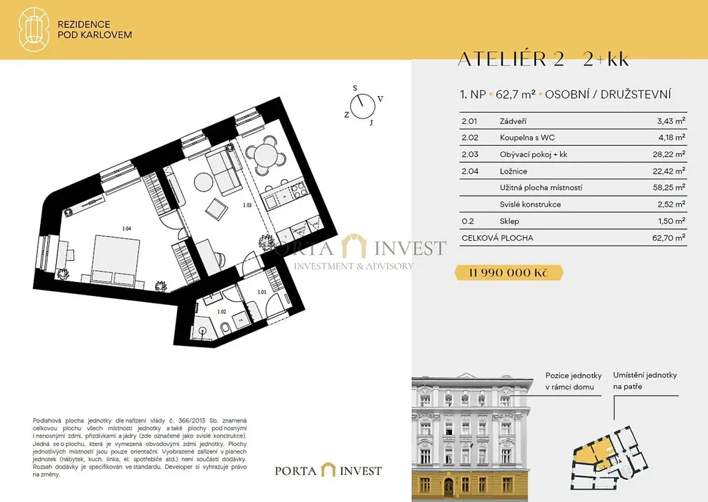 Hledáte výjimečný domov, který spojuje velkorysý prostor, prestižní lokalitu a nezapomenutelné výhledy? Představujeme vám unikátní ateliér 2+kk o výměře 61,2 m² v exkluzivní Rezidenci Pod Karlovem.