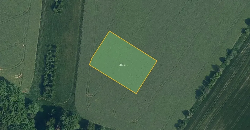 Pozemek je zapsán na listu vlastnictví č. 382 a je ve výlučném vlastnictví. Jedná se o parcelu č. 2379. Užíván je jako orná půda, jeho výměra je 3 011 m². Položen je v rovinatém zemědělském bloku. K pozemku je přístup zajištěn po parcele v obecním vlastnictví. Pravidelný tvar pozemku umožňuje optimální hospodaření.