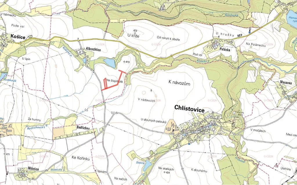 V katastrálním území Polánka u Malešova (okres Kutná Hora) nabízíme k prodeji dvě zemědělské parcely o celkové výměře 8 746 m², z nichž je předmětem prodeje 6 183 m².