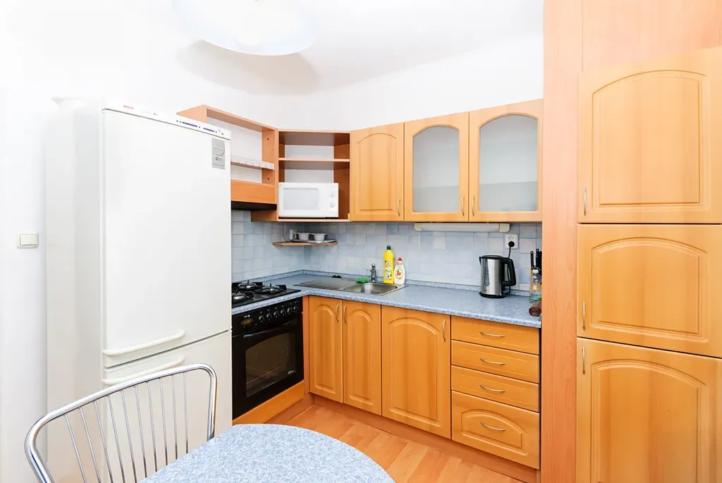 Kuchyň je vybavena všemi standardními spotřebiči: plynový sporák, trouba, mikrovlnná trouba, lednice s mrazákem. V koupelně je umístěna pračka, v předsíni velká šatní skříň. Na oknech jsou instalovány elektrické rolety. Byt se pronajímá kompletně zařízený. Díky promyšlenému dispozičnímu řešení poskytuje byt velmi komfortní zázemí pro rodinu.