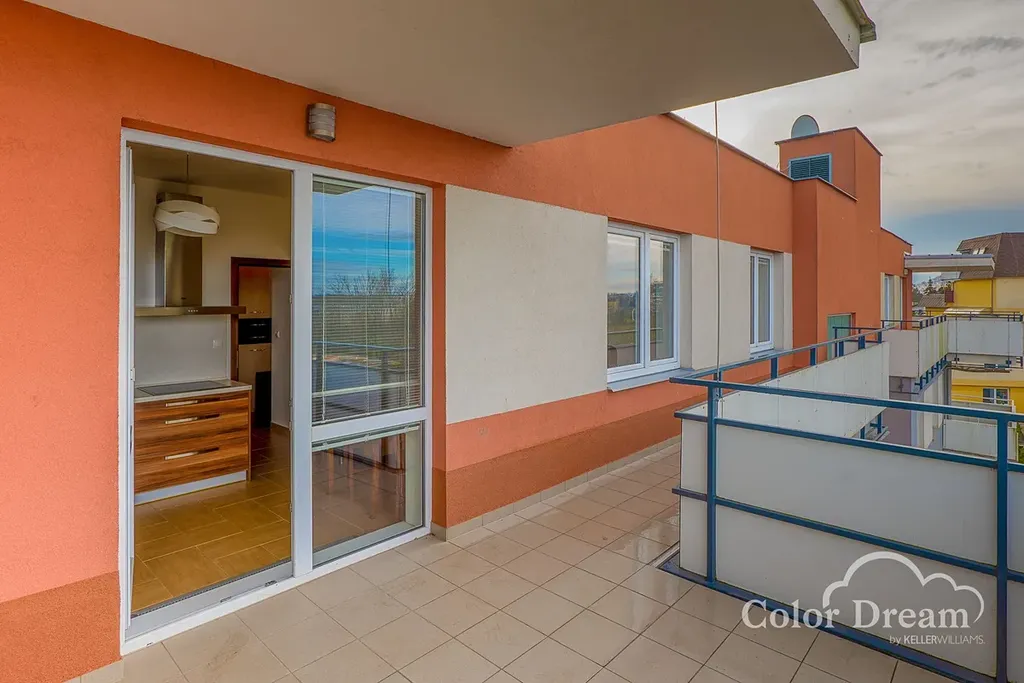 Tento cihlový byt s velkou lodžií přes celou šířku bytu orientovanou na SZ o velikosti 18,3 m2 a další menší lodžií orientovanou na JV o velikosti 9,7 m2 se nachází v posledním 5 NP, takže naprosto nádherný výhled do dalekého okolí.