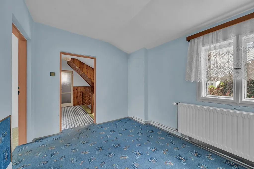 K prodeji je polořadový rodinný dům v Lanškrouně, v ulici Lidická. Zastavěná plocha domu činí 110 m2 a náleží k němu pozemek s celkovou výměrou 398 m2.. Obytná dispozice domu je 5+1 s příslušenstvím. Dům je dvoupodlažní, nepodsklepený se zásadními úpravami z 80. let minulého století. Nemovitost je vyklizená a prodává se ve stavu před rekonstrukcí a modernizací. Stav domu je velmi dobře udržovaný a vše je plně funkční (nový plynový kotel). Dispozici přízemí tvoří vstupní veranda, šatna, chodba, kuchyně, jídelna, obývací pokoj, dále koupelna, samostatná toaleta, komora a prádelna se vstupem na zahradu. Přízemí a patro je propojeno pevným schodištěm vedoucím z chodby. Patro pak představuje klidovou část domu se třemi pokoji a terasou. Najdeme zde i malou půdičku využívanou jako úložný prostor. Součástí domu je kromě užitkové zahrady za domem a předzahrádky také zahradní domek sloužící ke skladování nářadí. Dům je napojen na veřejný vodovod, kanalizaci, elektřinu i plyn. Je vhodný pro využití dotací při řešení snížení třídy energetické náročnosti. V případě zájmu o prohlídku se na mě neváhejte obrátit, ráda vás domem provedu.