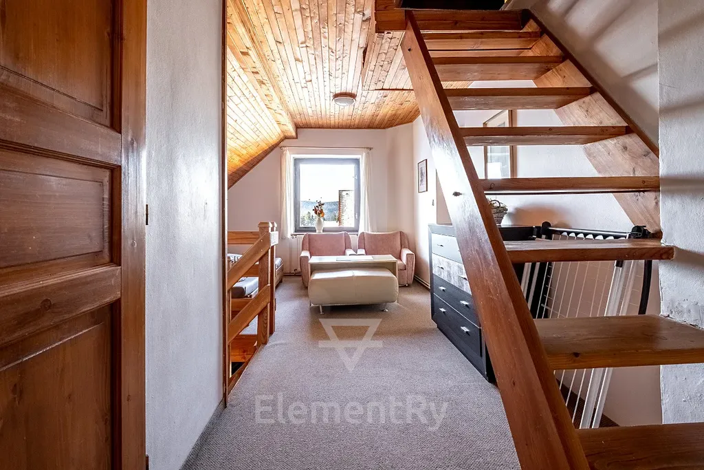 V exkluzivním zastoupení Vám ke koupi nabízíme rekreační dům v Harrachově v místní části obce Nový svět. Jedná se o součást dvojdomku-pětipodlažní budovu s jedním podzemním a čtyřmi nadzemními podlažími o celkové obytní ploše 239 m2, okolní pozemek má velikost 311 m2. Objekt je nyní využíván pro komerční účely a pronajímán jako penzion.