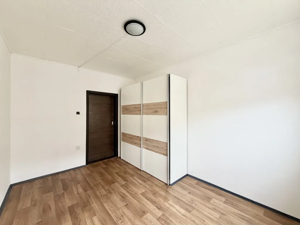 Byt se nabízí částečně vybavený. Kuchyně myčkou, elektrickou troubou, varnou deskou a digestoří. Obývací část je nezařízena. Součástí ložnice je šatní skříň. Druhý pokoj je nevybavený. V koupelně je vana a umyvadlo. Toaleta je umístěna samostatně. Dále v bytě najdeme prostornou komoru.