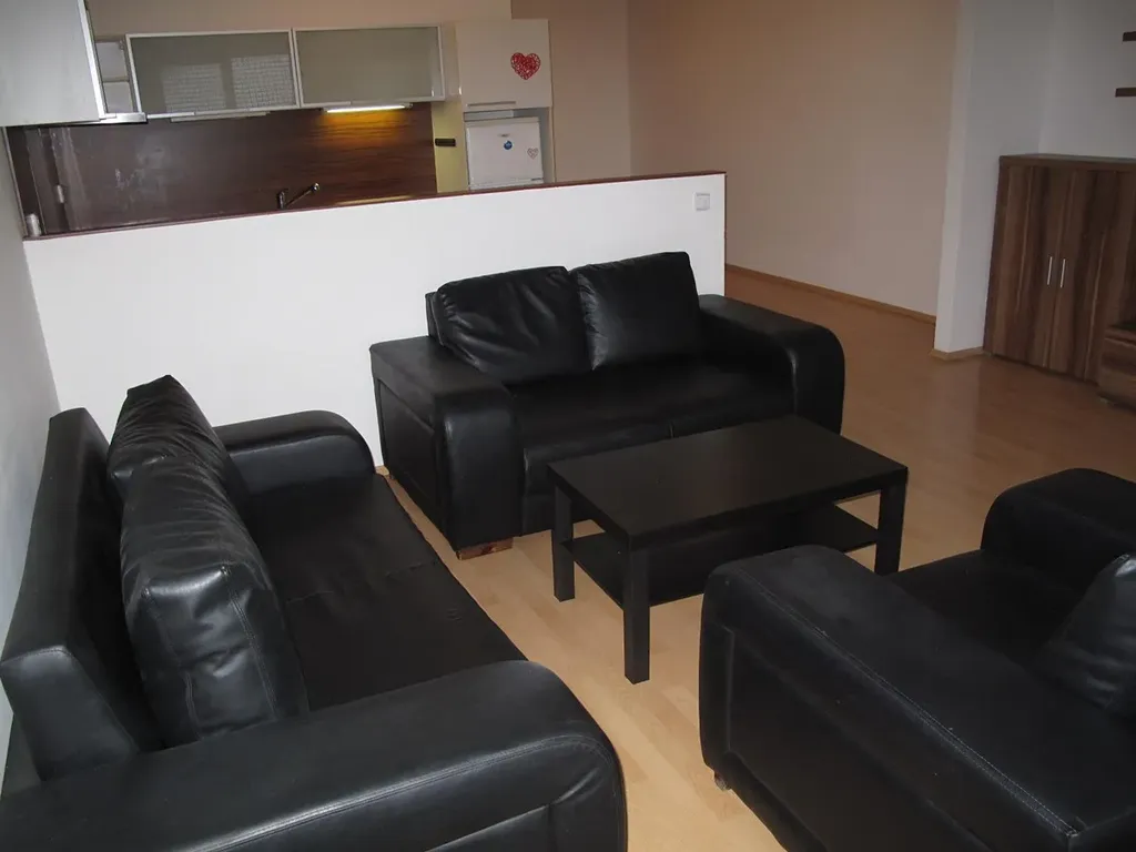 Byt se nabízí částečně vybavený. Součástí kuchyně je prostorná kuchyňská linka s lednicí, elektrickou troubou, sklokeramickou deskou a digestoří. Obývací části dominuje pohodná černá kožená sedací souprava. Spací část je oddělena zdí, což umožňuje prostor využít téměř jako 2+kk. Součástí vstupní chodby je velká třídveřová prosklená vestavěná skříň s dostatkem úložného prostoru. V prostorné koupelně se nachází vana, umyvadlo se zrcadlem, pračka a toaleta.