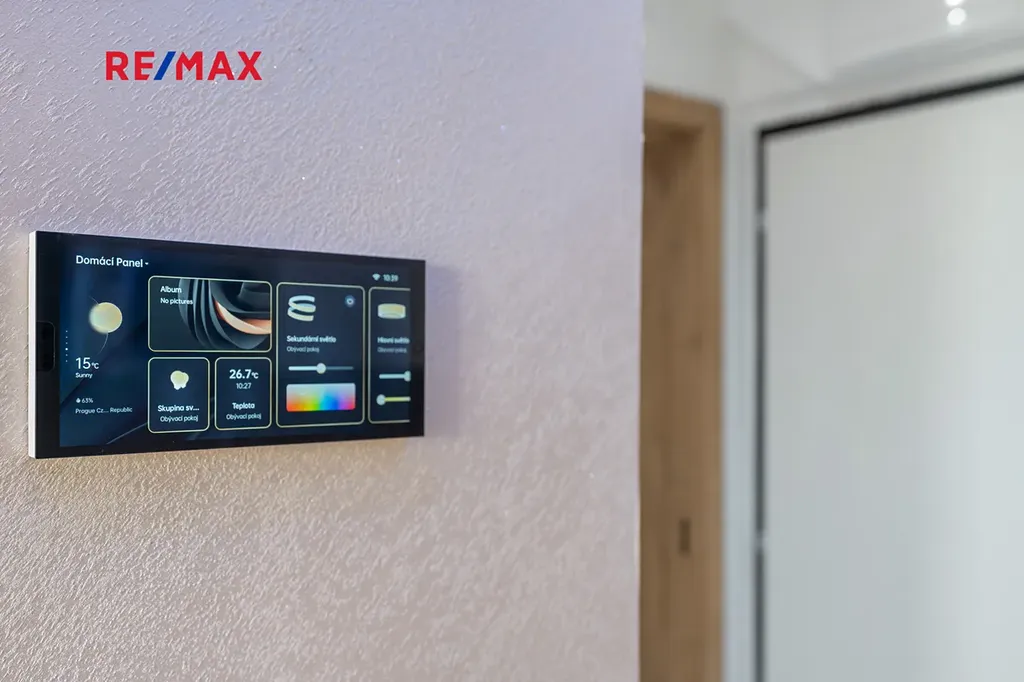 chytrá domácnost – centrální panel i aplikace v mobilu pro ovládání světel, barev, teploty, klimatizace či zabezpečení