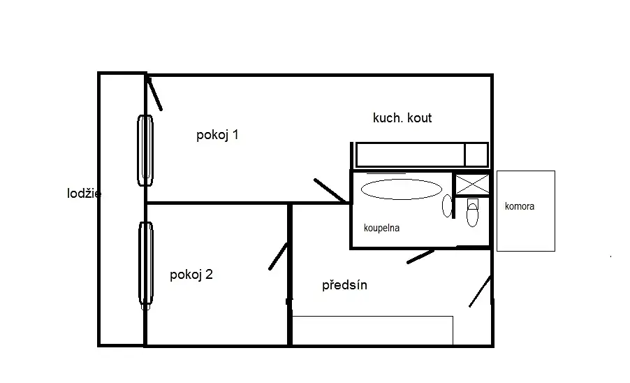 Nyní je čerstvá bílá výmalba, v koupelně byla osazena menší vana, jinak je byt v dobrém stavu.