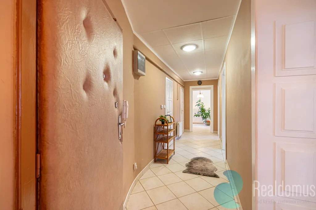Nachází se v prvním patře (2.NP) činžovního domu bez výtahu. Disponuje prostornou vstupní chodbou (12,30 m²). Obývacím pokojem (31,80 m²), kuchyní (12,40 m²) a třemi pokoji: pokoj č.1 – 25,40 m², pokoj č.2 – 24,60 m²a pokoj č.3 – 19,20 m². Dále je zde koupelna s vanou, toaletou (7,10 m²) a praktická komora (2,00 m²).