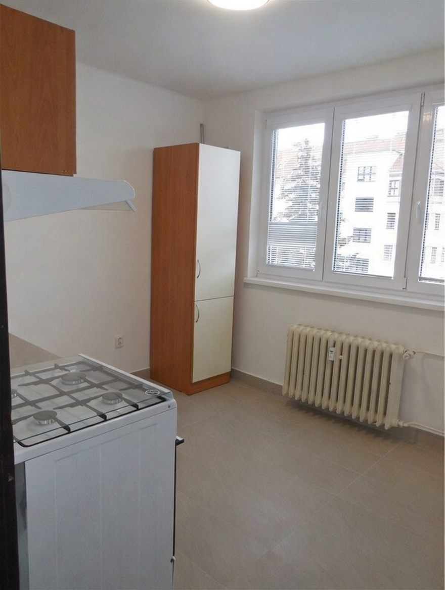 Byt s kuch. linkou a sporákem, jinak bez nábytku.