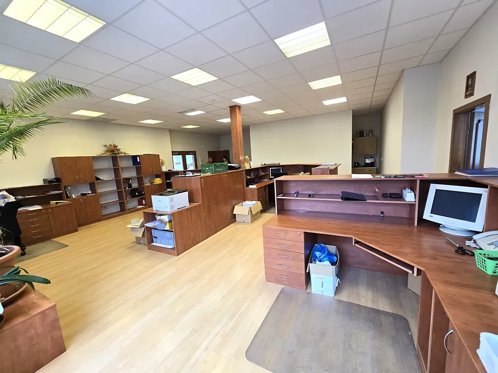 Podlahy tvoří plovoucí podlaha, linoleum a dlažby, okna a dveře jsou plastové s dvojskly. Zařízení kanceláře je možné ponechat dle domluvy.