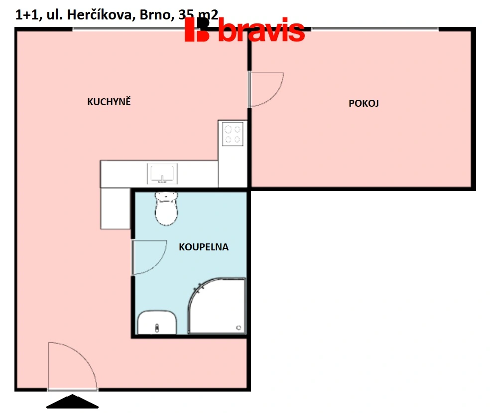 Pronájem bytu 1+1, Brno - Královo Pole, Herčíkova, 35 m2