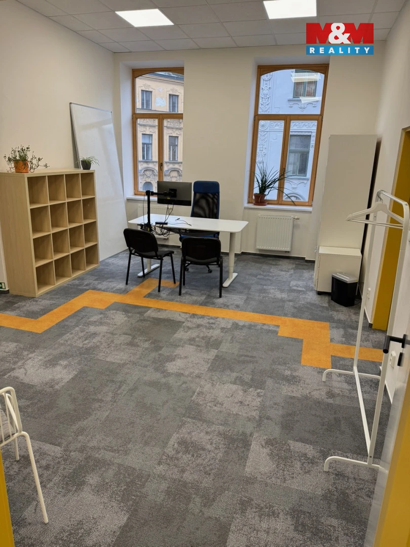 Nabízíme k pronájmu kancelářské prostory o užitné ploše 125,64 m2 ve třetím patře budovy s výtahem. Prostory jsou kompletně zrekonstruovány, ve všech hlavních místnostech jsou klimatizační jednotky, na podlaze jsou položeny koberce, dále je v prostorech kuchyňská linka. Součástí prostor je i místnost vlastního sociálního zázemí s WC, umyvadlem a sprchovým koutem. Tato kancelářská jednotka má svůj vlastní elektrokotel k vytápění a elektrické ohřívače vody a vlastní podružný elektroměr a vodoměr. V prostorech je movitý majetek nájemce, který je ochoten toto přenechat novému nájemci zdarma. Díky umístění v centru města máte vynikající dostupnost veřejné dopravy, restaurací a obchodů. Prostory jsou připraveny k okamžitému pronájmu. Pro více informací kontaktujte makléře.