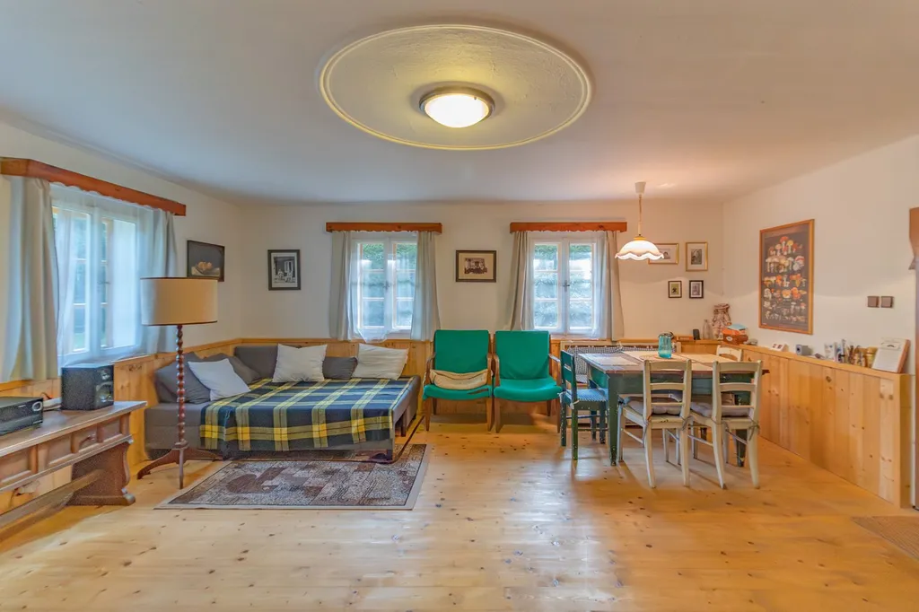 Původní část obytného stavení z r. 1816 bylo roubené, přístavba byla provedena z masivního zdiva převážně kámen s obytnou plochou cca 83 m2 a na obytnou část navazuje menší dřevěná kolna / dílna a část bývalé stodoly s celkovou zast. plochou172 m2. Celé obytné stavení, dispozičně řešeno jako 3+1 s cel. je nyní po částečné rekonstrukci. V přízemí domu se nachází vstupní chodba, prostorná sednice s dřevěnou podlahou, dva další pokoje, komora s boilerem, koupelna a WC s podlahovým vytápěním. Z chodby je vstup na prostornou půdu.
