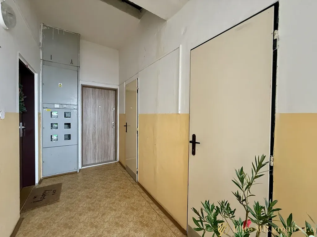 Byt se nachází ve 7. patře sedmipatrového panelového domu s výtahem. Za vstupem do bytu najdete prostornou předsíň s vchodem na samostatné WC, do koupelny se sprchovým koutem, dále do pokoje a do druhého pokoje s kuchyňskou linkou.