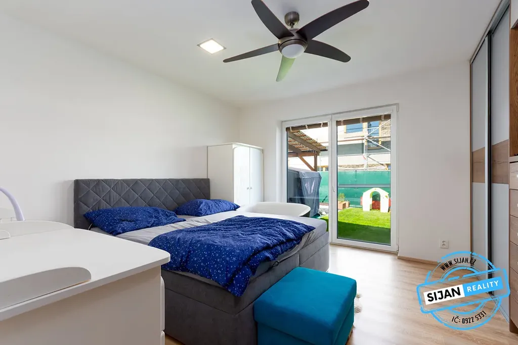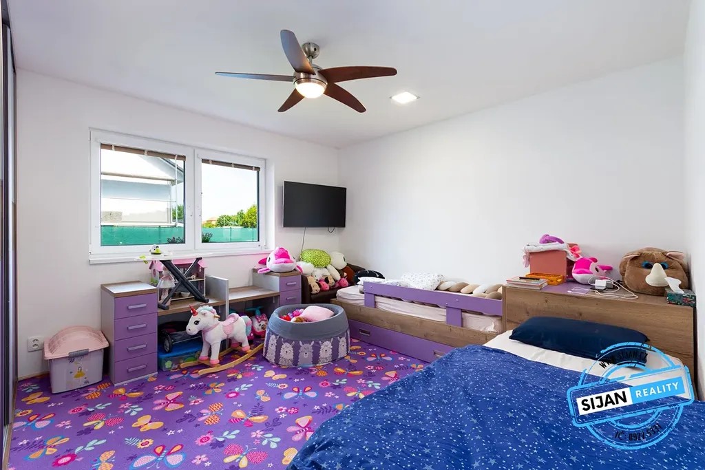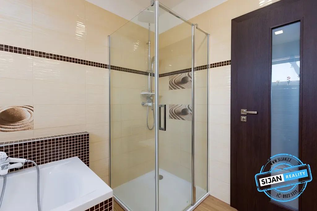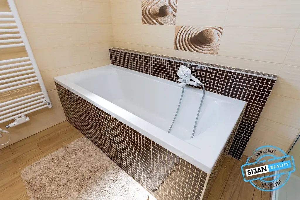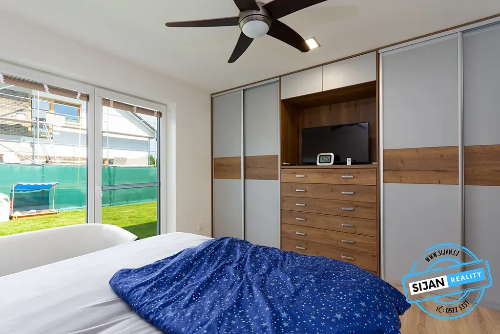 Na udržované zahradě si užijete soukromí i relax – k dispozici je bazén o objemu 20m³, vyhřívaný tepelným čerpadlem umístěným v garáži. Prostorná terasa s pergolou vybízí k letnímu posezení a rodinným grilovačkám. Samozřejmostí je garáž (32 m²) s elektrickými vraty na dálkové ovládání.