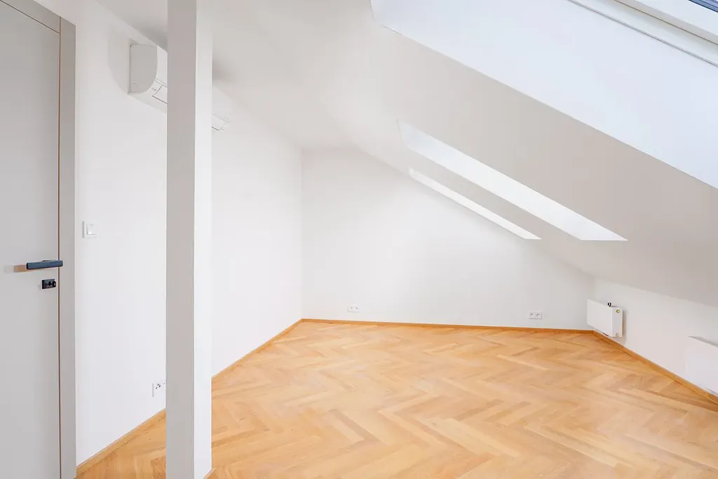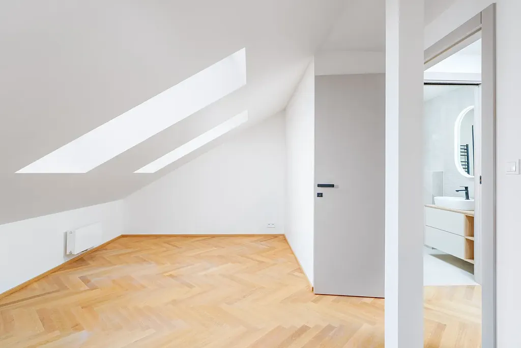 Novostavba podkrovního bytu o celkové ploše 63,6 m² v 6. nadzemním podlaží kompletně zrekonstruovaného cihlového domu s proskleným výtahem v ulici Bořivojova 825/31, Praha 3. K nastěhování březen 2026.