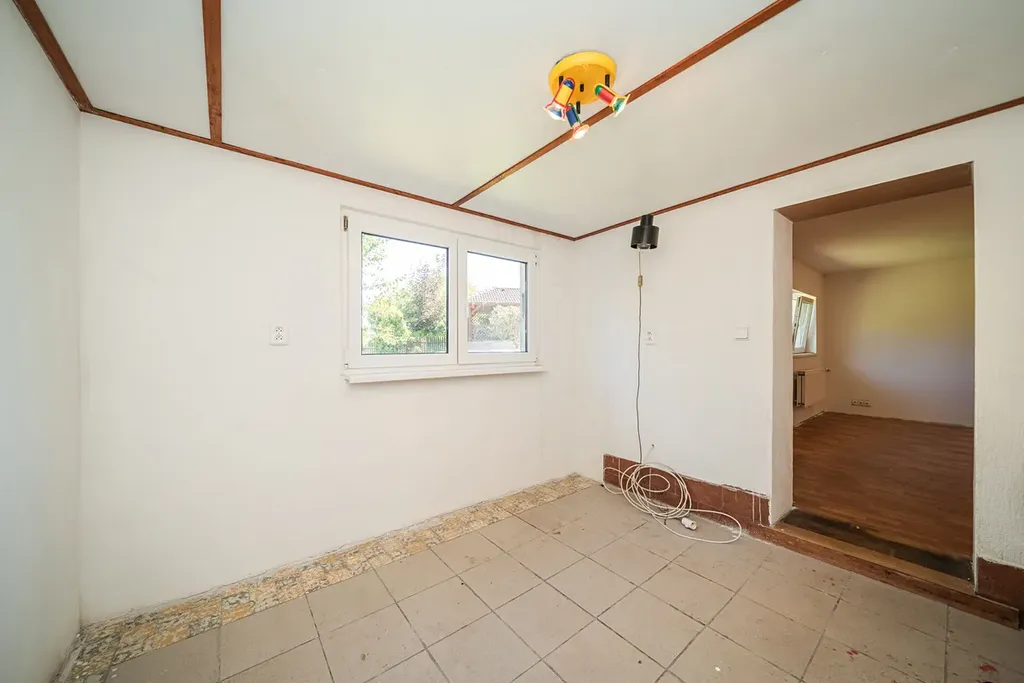 V současnosti je dispozice domu koncipována jako 3 + 1 s možností navýšení počtu obytných místností a změny dispozice prostřednictvím stavební úpravy přízemí domu - podrobné informace v kanceláři.