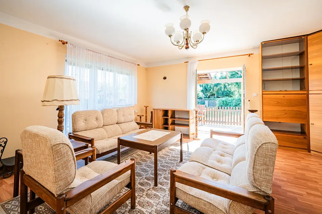 Příjemnou atmosféru při výhledech z domu, nebo při posezení na terase dotváří udržovaná zahrada nepravidelného tvaru o výměře 1195m2.