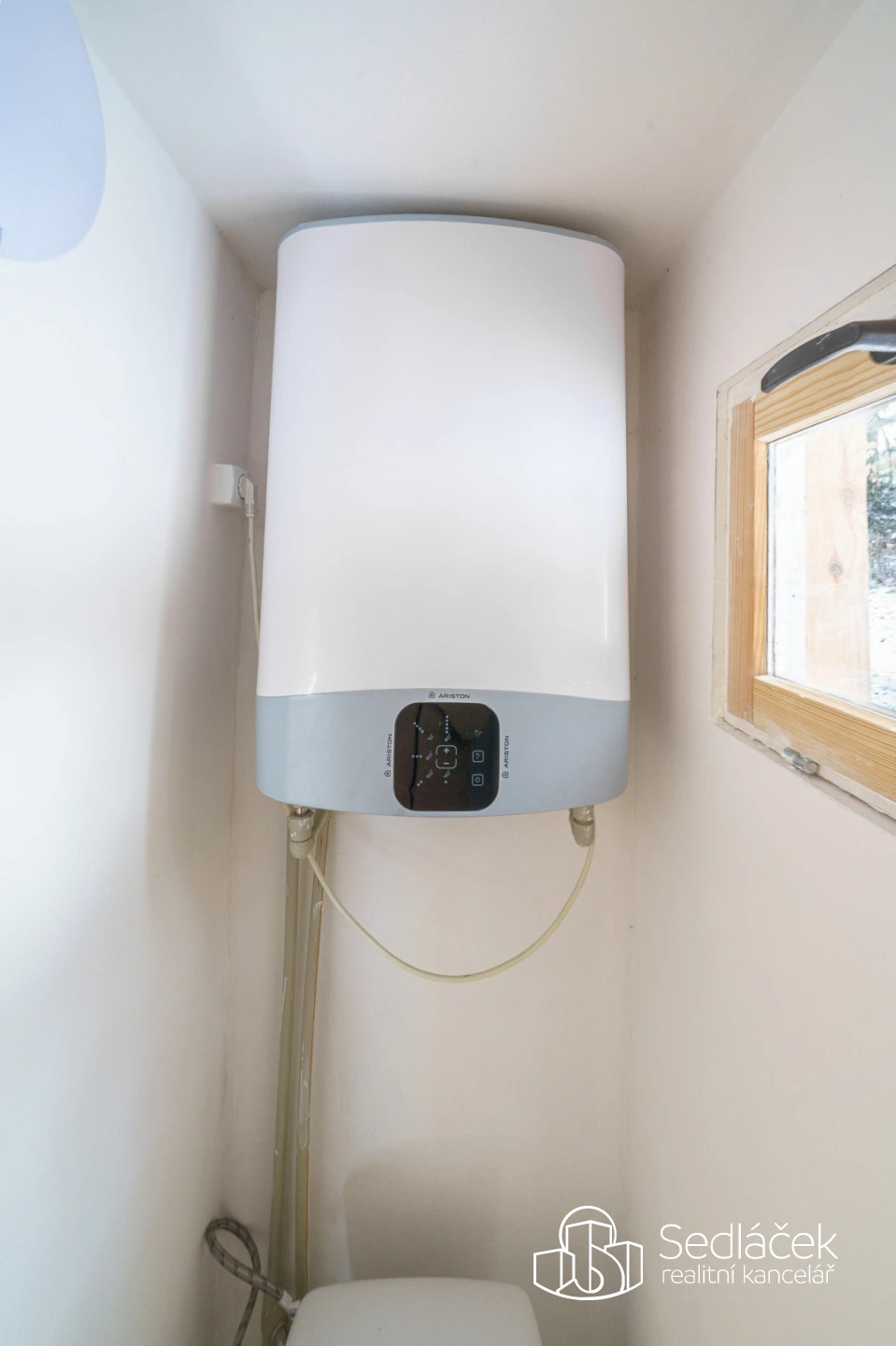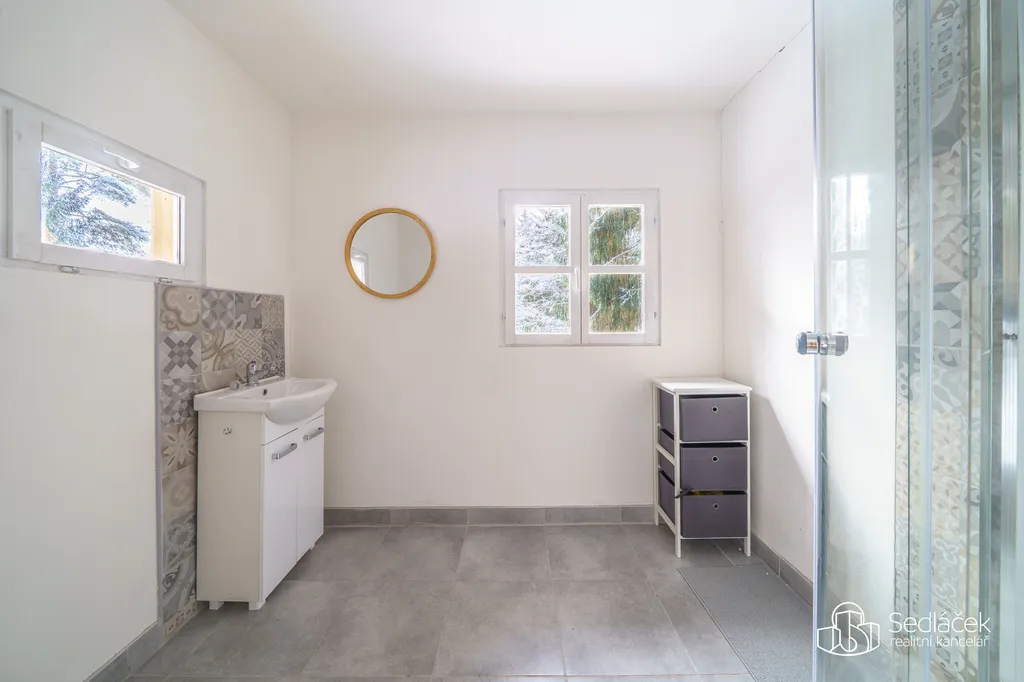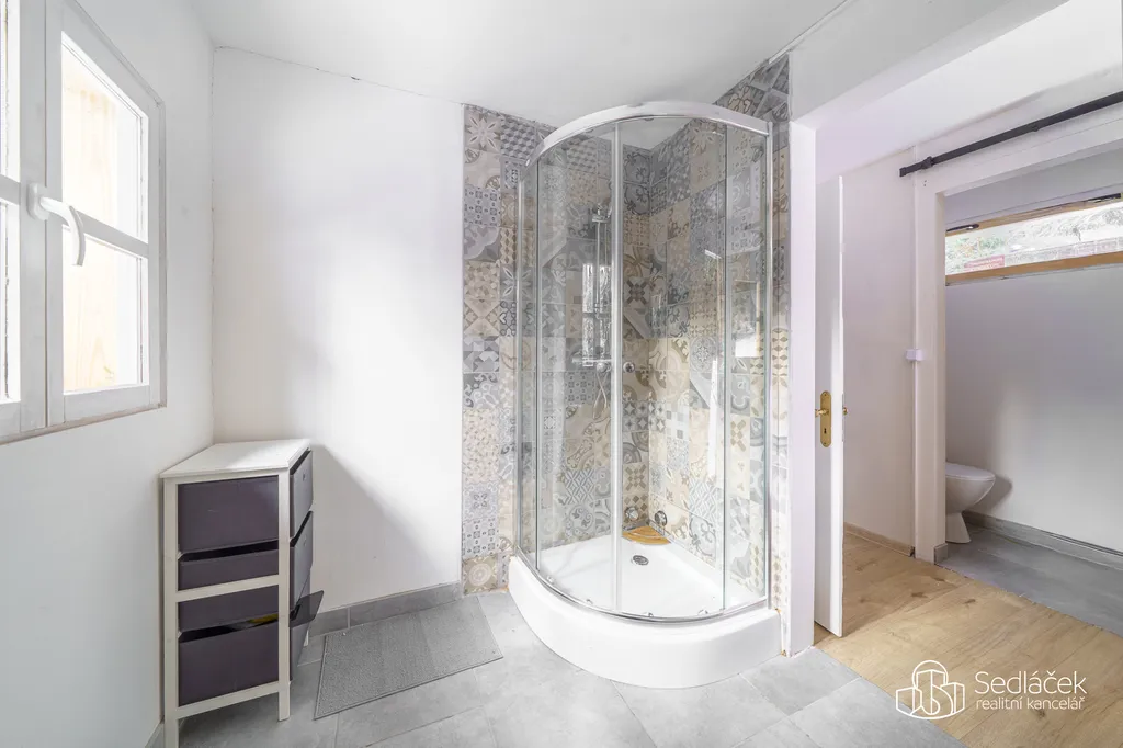 Ohřev teplé užitkové vody je řešen elektrickým bojlerem umístěným na WC. K dispozici je samostatná koupelna se sprchovým koutem, která poskytuje plnohodnotné hygienické zázemí.