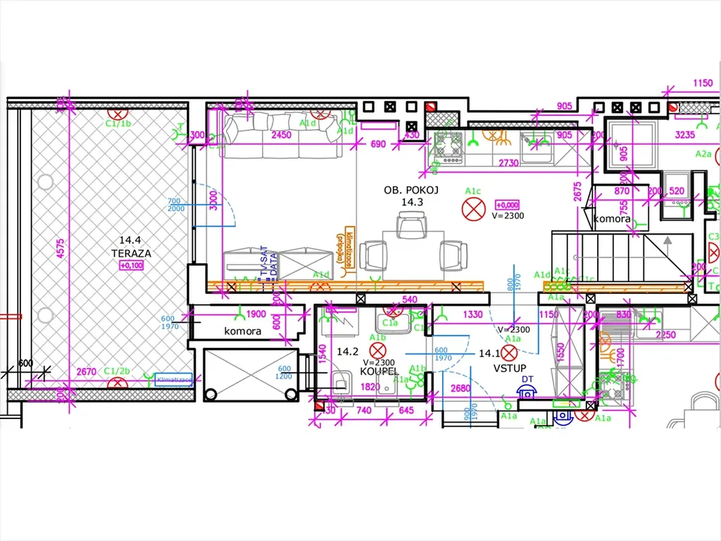Pěkný kompletně zařízený nový mezonetový byt s terasou 2+kk 63 m2 se nachází v 5. patře hezkého udržovaného cihlového domu s výtahem. Všechna okna jsou orientována do klidného zeleného vnitrobloku.