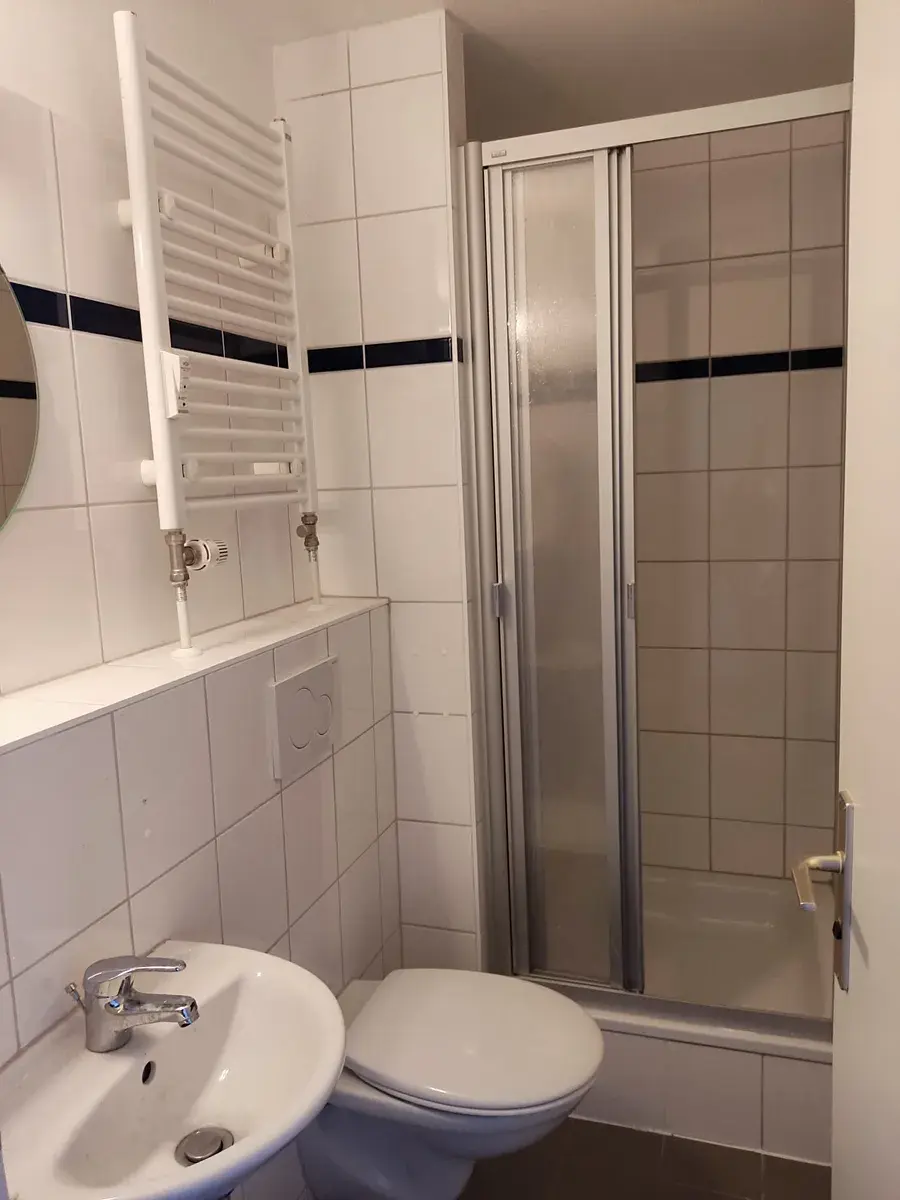 Koupelna je vybavena sprchovým koutem, toaletou a topným žebříkem. Plastová okna zajišťují dostatek světla a krásný výhled na okolí.