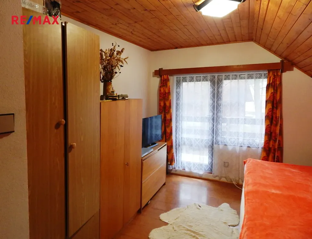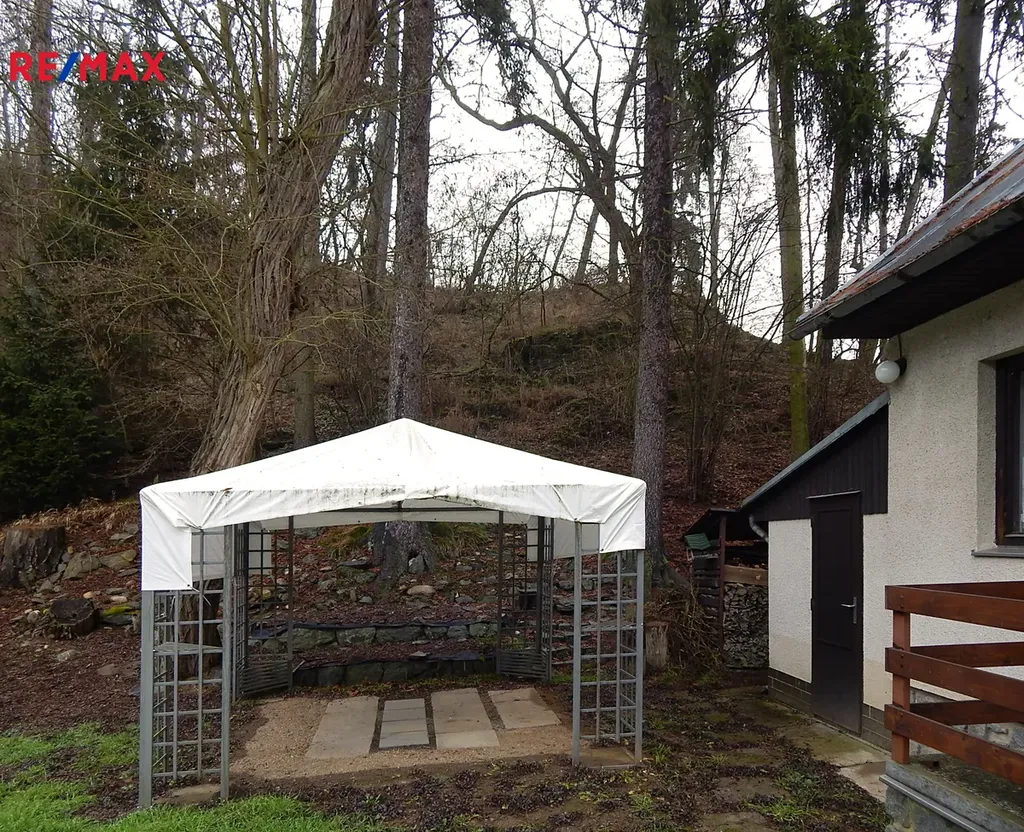 Nabízíme k prodeji chatu se zastavěnou plochou 44 m2, která se nachází v malé chatové osadě u rybníka Vožehák, přímo u lesa pod zříceninou hradu Angerbach. Chata je postavená v 80tých letech na vyšší betonové podezdívce, z bílých plynosilikátů, okna i dveře dřevěná, dvě skla. Na střeše je plechová krytina, je vytápěna krbem a Petry v kuchyni. V přízemí je kuchyň, pokoj, spíž a v podkroví dva malé pokojíky a balkon. S vedlejší chatou je společná zeď a balkon. Za chatou je přistavěná kolna a je zde také vchod na záchod, který se spláchne kýblem. Jímku majitelé vyváželi cca jednou za 10 let. Chata je udržovaná, stav velmi pěkný, možné ihned užívat.