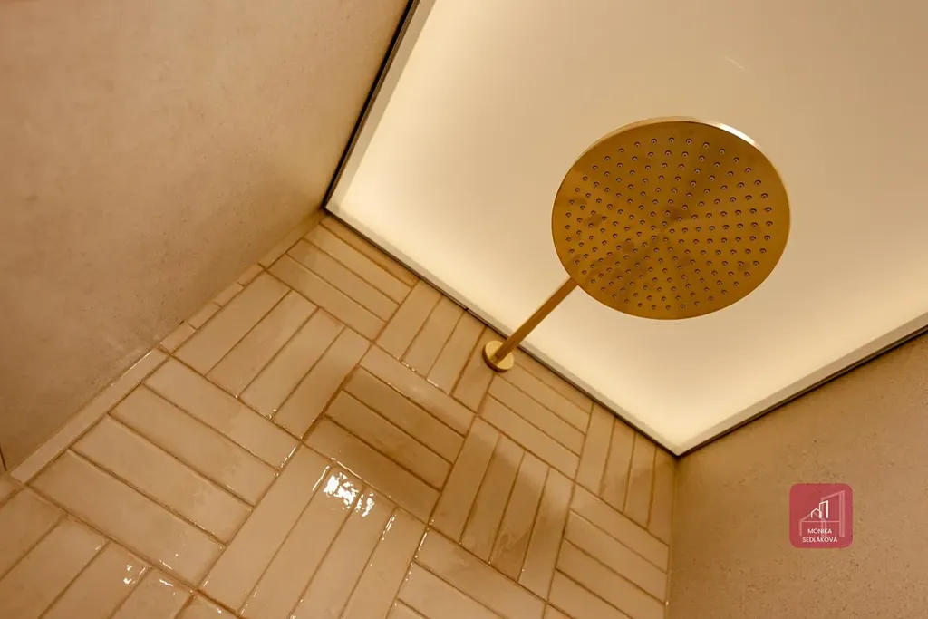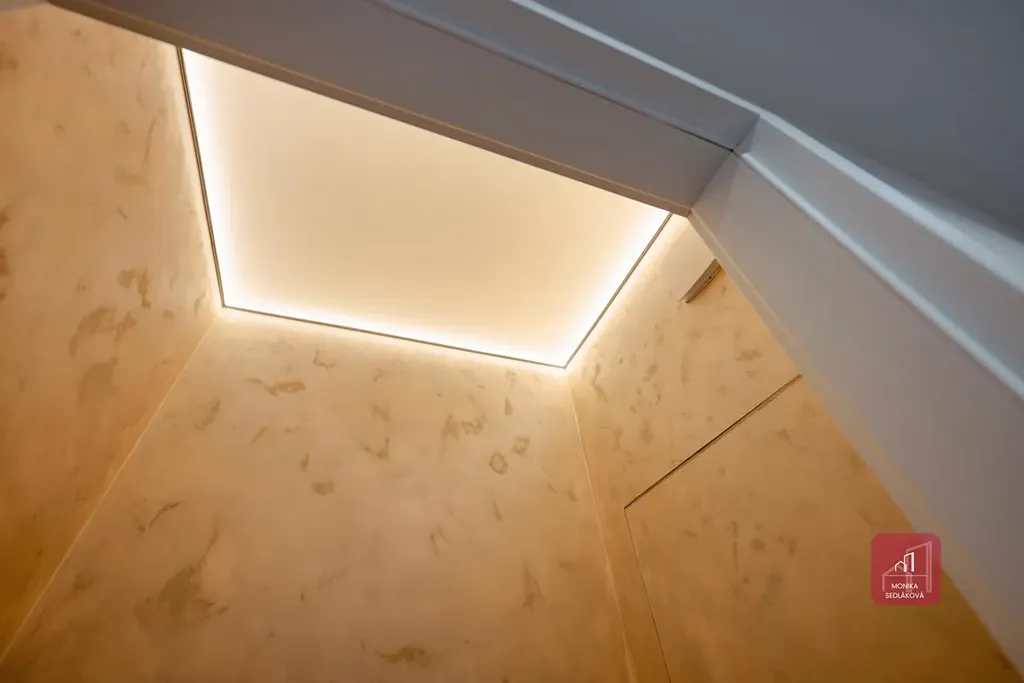 Koupelna i WC s napínanými stropy a LED podsvícením.