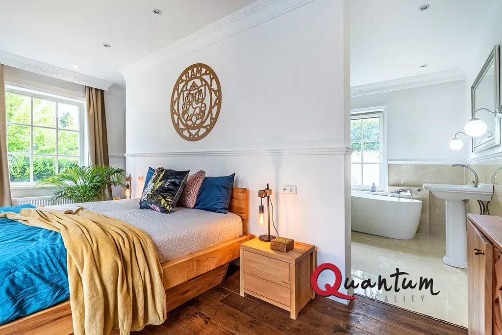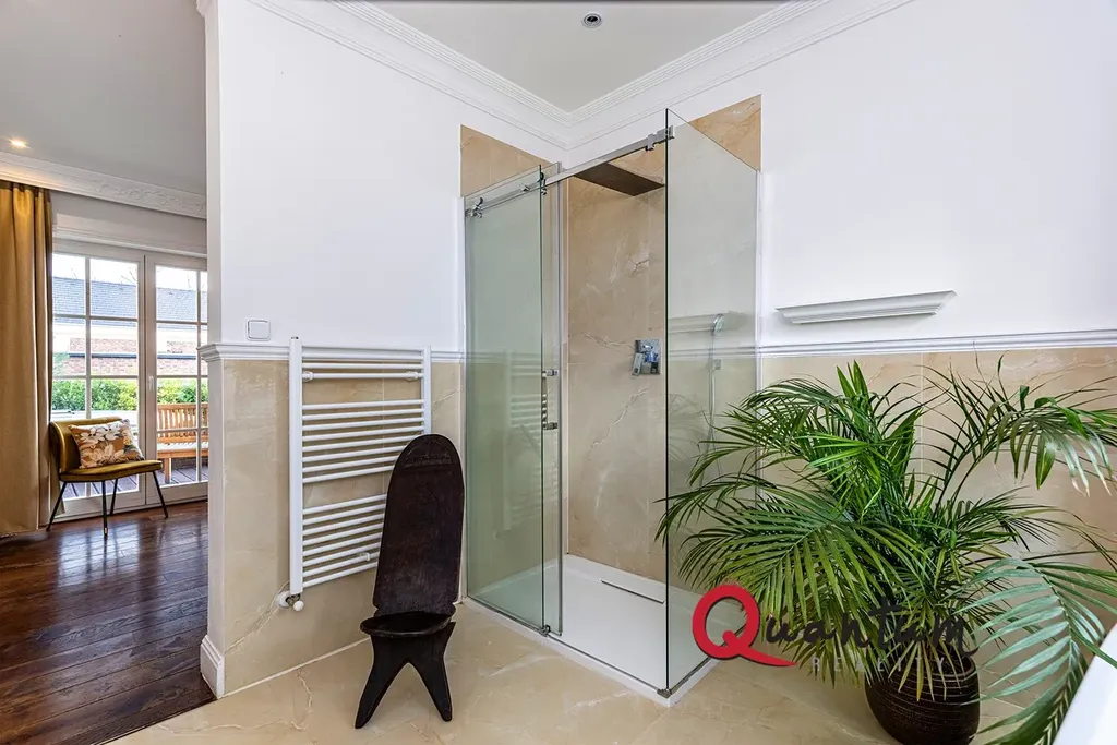 Ložnice s vlastní koupelnou, ložnice, 2x koupelna, šatna, velká podkrovní místnost s kuchyňským koutem aktuálně využívaná jako fitness (snadná možnost změny na další ložnici se šatnou a koupelnou, případně nezávislého 2KK se šatnou a koupelnou k bydlení pro hosty či rodiče apod.)