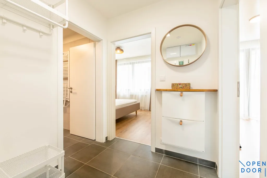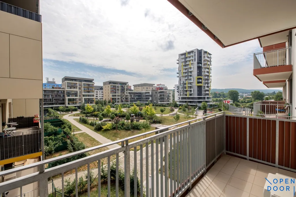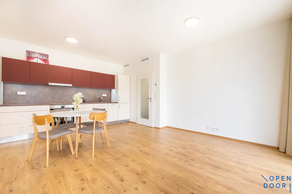 Nabízíme pronájem nového, částečně vybaveného bytu 2+kk cca 52 m2 s balkonem 9 m2 a garážovým stáním ve 3. patře bytového domu v Komořanské ulici v moderním uzavřeném bytovém komplexu „Modřanka“.