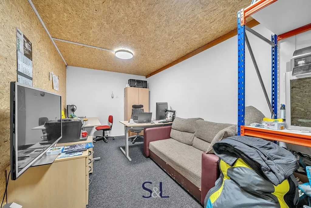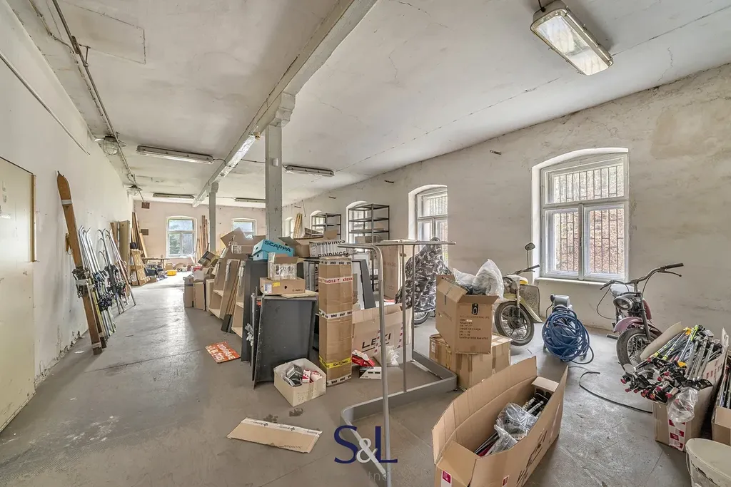 skladové a výrobní prostory, dílenské prostory, nebytové prostory, bytová jednotka, garáže a zavedená prodejna lyžařského vybavení.
