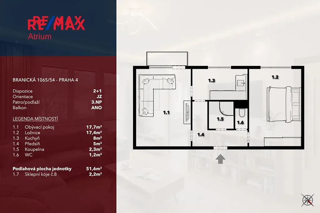 Prodej bytu 2+1, Praha - Braník, Branická, 52 m2