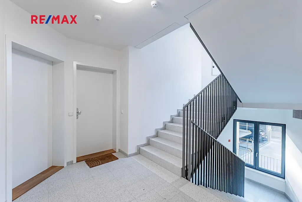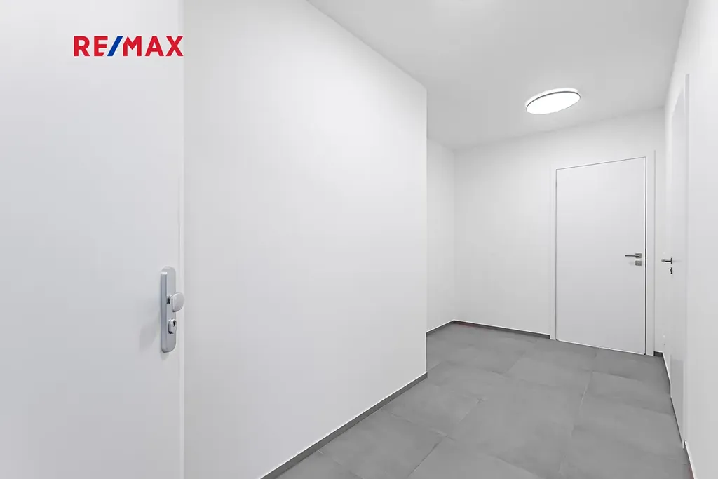 Nemovitost se nachází ve druhém patře objektu, který disponuje výtahem. Při vstupu do bytu se nacházíme v prostorné vstupní hale (9.06 m2). Z ní se dostaneme na toaletu (1.35 m2), nebo dále do obývací místnosti spojené s kuchyňským koutem (25.06 m2). Ten disponuje všemi potřebnými spotřebiči včetně oblíbené myčky a nelze opomenout ani lednici. Vše je zcela nové a Vy tak budete mít možnost započít novou kapitolu svého života jako úplně první nájemníci. Proto Vás jistě potěší i oddělená ložnice (16.84 m2), u které se nachází koupelna (6.3 m2). Ta je dostatečně veliká, aby se do ní vešla pračka a spolu s tím i sušička na prádlo. Dalšími přednostmi bytu, které rozhodně oceníte, jsou venkovní žaluzie, takže v případě touhy po větším soukromí stačí stisknout potřebné tlačítko. A vedle toho pak nelze opomenout ani instalovanou rekuperaci.