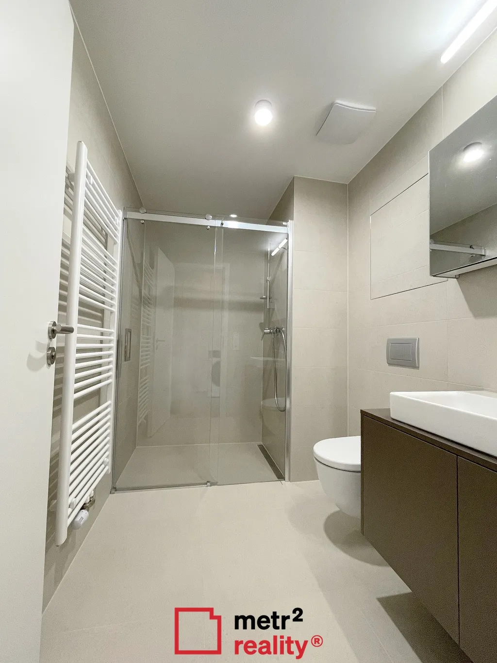 Byt se pronajímá vybaven kuchyňskou linkou na míru včetně vestavěných spotřebičů – varná deska, elektrická trouba, digestoř, myčka, volně stojící lednice s mrazákem. Prostorná vstupní chodba je vybavena prostornou vestavěnou skříní, pračkou a sušičkou. Koupelna se sprchovým koutem a toaletou. V bytě jsou velkoplošná okna - izolační trojskla s předokenními žaluziemi. Nájemné činní 15.700 Kč měsíčně + služby 2.500 Kč měsíčně bez elektřiny, tu si nájemník přepisuje na sebe + parkovacího stání 1.800 Kč měsíčně. Vratná jistota ve výši dvou měsíčních nájmů. Velmi hezký byt v žádané lokalit s veškerou občanskou vybaveností v dosahu. Byt je k dispozici ihned a je vhodný pro dlouhodobé bydlení.