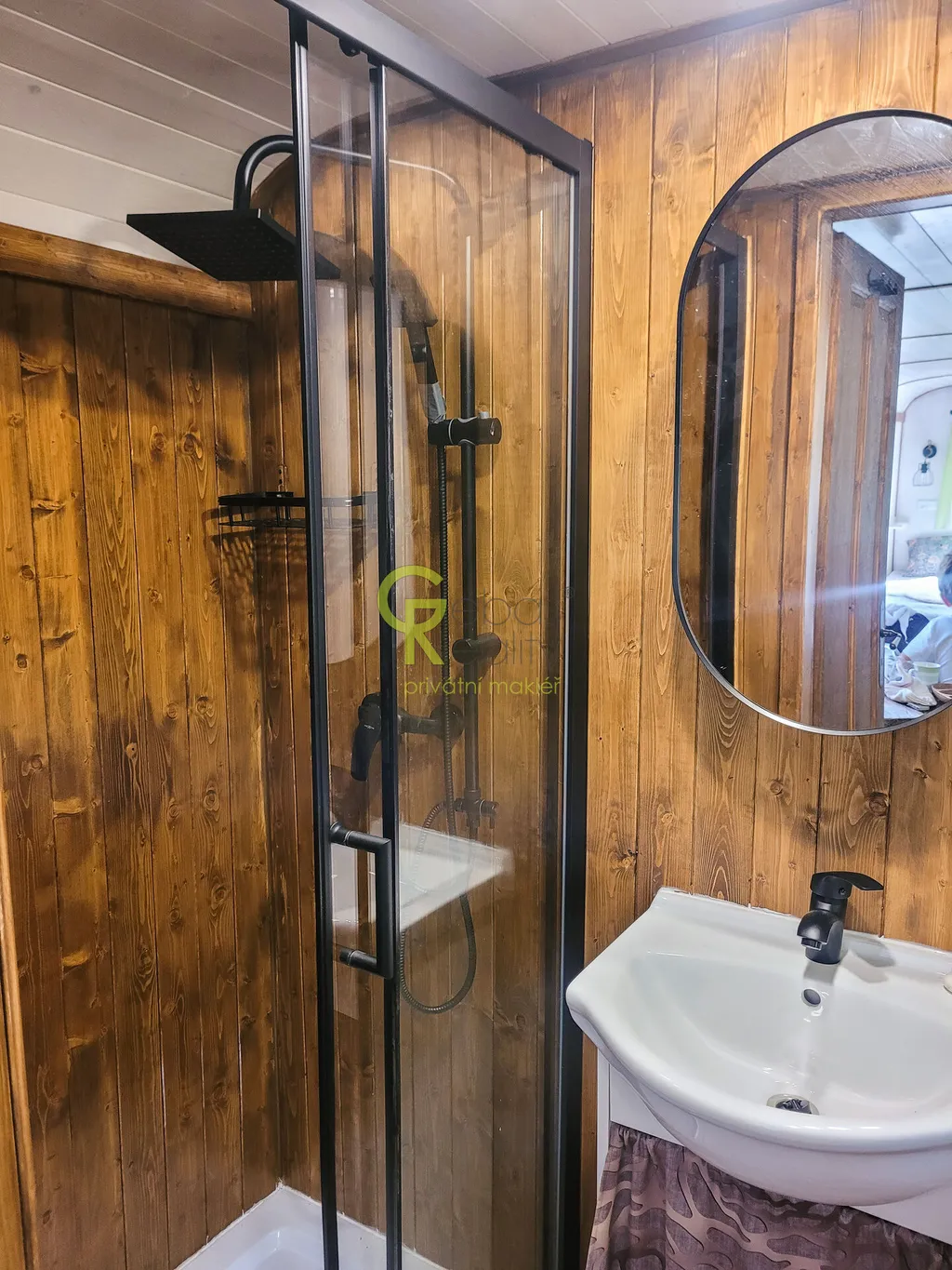 Interiér roubenky nabízí autentickou chalupářskou atmosféru. K dispozici je plně vybavená kuchyň s jídelní částí a masivní akumulační pecí se spací plochou, dvě samostatné neprůchozí ložnice, každá s vlastním krbovým topidlem, obývací průchozí pokoj, vstupní chodba, koupelna se sprchovým koutem a samostatné WC. Dům je napojen na obecní vodovod, na pozemku je také studánka či okrasné jezírko. Vytápění je řešeno elektrickým kotlem s možností dálkové regulace, alternativně krbovými kamny v každé z ložnic a pecí v hlavní místnosti. Kanalizace je formou jímky. Podlahy jsou dřevěné a dlažba s podlahovým vytápěním, okna stylová špaletová s bezpečnostními roletami. Dům je napojen na PCO, internet i mobilní signál bez omezení. Parkování je možné minimálně pro tři vozidla u domu, přístup po obecní, celoročně udržované komunikaci.Součástí prodeje je také samostatně umístěná celoročně obytná maringotka dle vlastního návrhu a realizace od lemované společnosti, citlivě zasazená do zahrady s vlastním vstupem a parkováním tak, aby bylo zachováno soukromí obou objektů. Maringotka je plně vybavená (v koupelně sprch. kout, WC, teplá voda, topný žebřík, kuchyň včetně lednice, sklokeramické desky, trouby, mikrovlnky, kávovaru a veškerého kuch.vybavení) má vlastní zázemí a terasu a je velmi úspěšně využívána ke krátkodobým pronájmům zaměřeným na klientelu vyhledávající netradiční pobyt v přírodě.Celý soubor nemovitostí je ve výborném technickém stavu, bez nutnosti dalších investic a je možné jej okamžitě užívat nebo převzít jako zavedený ubytovací projekt.K dispozici ihned. Pro více informací nebo domluvení termínu osobní prohlídky nás neváhejte kontaktovat. Rádi se Vám budeme věnovat. (PENB – G)